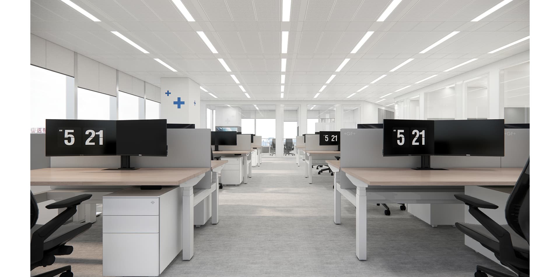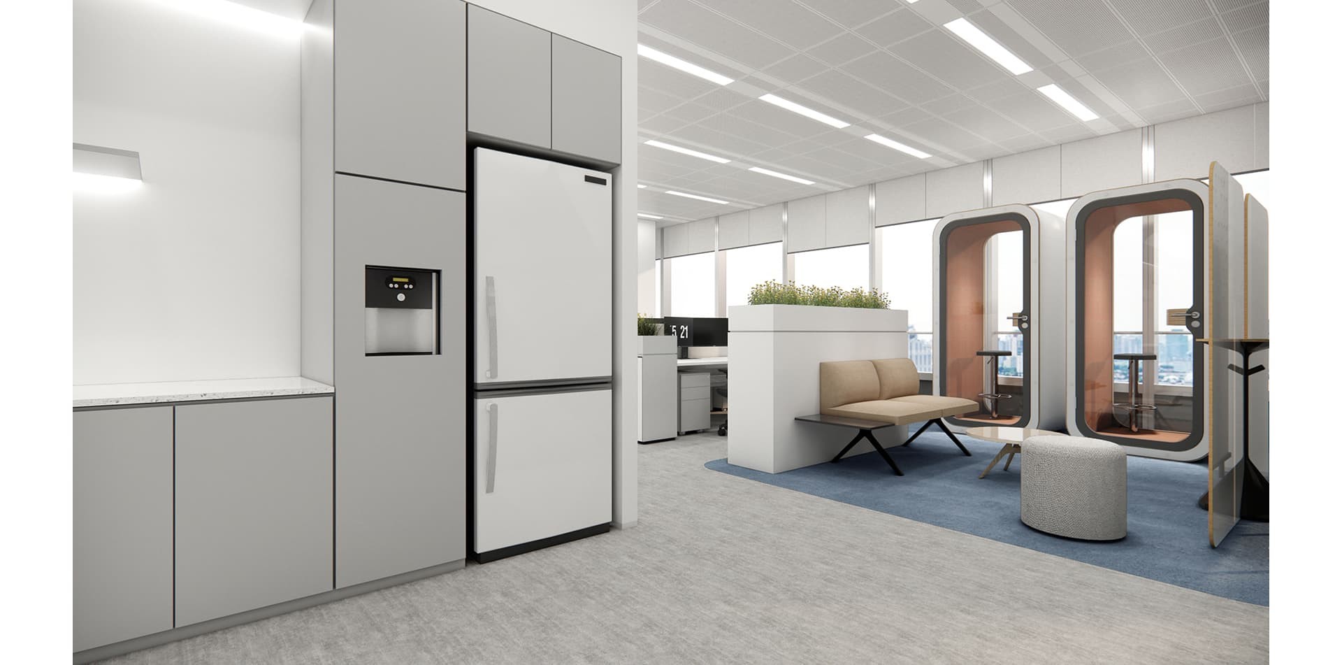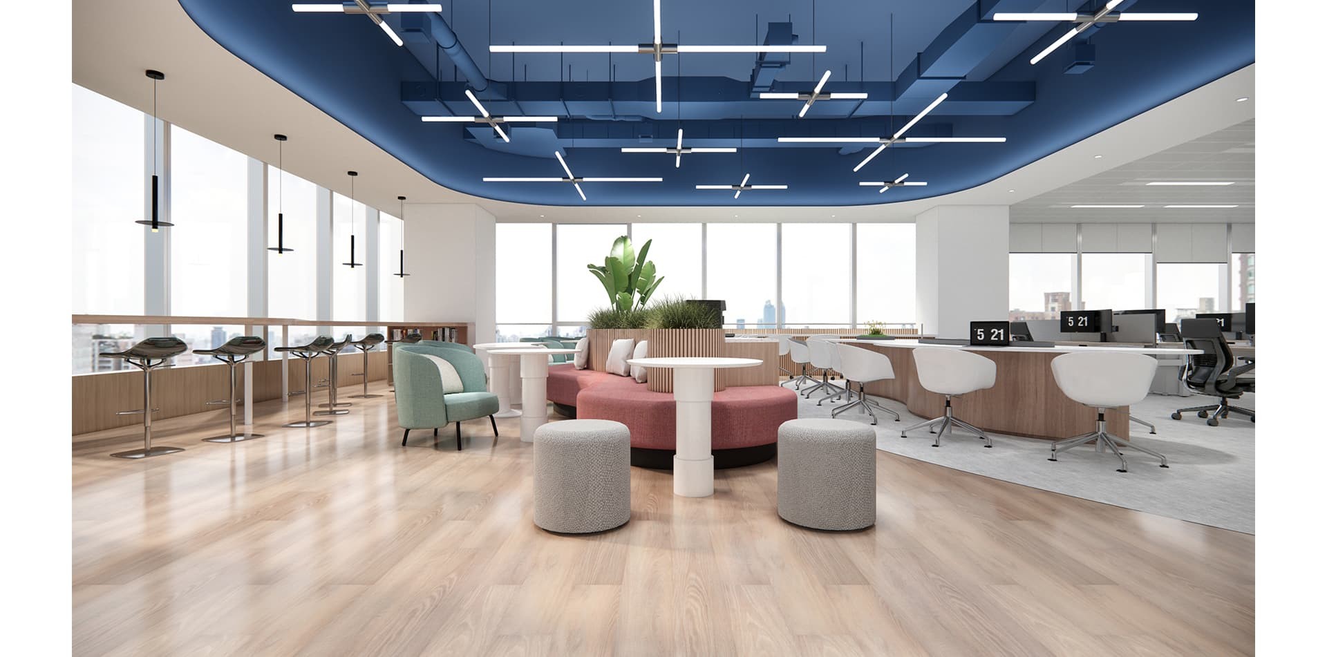 上海喬治費歇爾辦公室裝修設計以智能靈動、多元融合為核心,開放式布局搭配智能系統,營造專業與人文兼具的現代辦公空間。